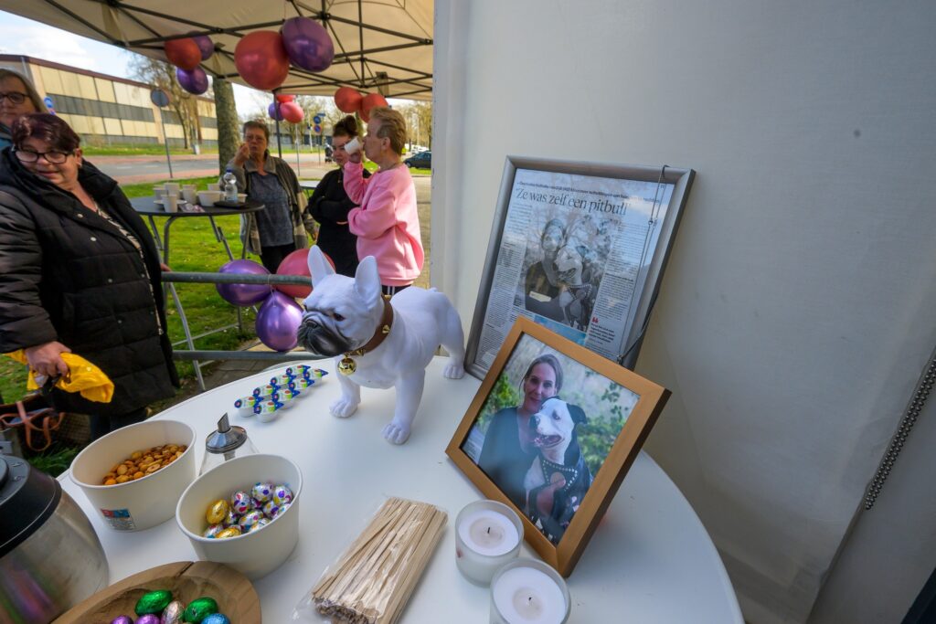 Als blijk van waardering kregen de gasten een bijzonder presentje mee naar huis: een mok gevuld met lekkers. Op de verpakking prijkte een liefdevolle foto van Nathalie met haar trouwe hond Fawzi.