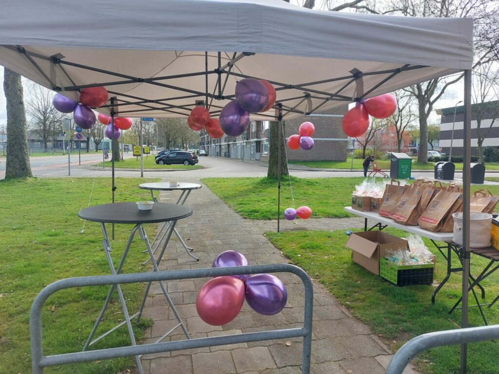 Tijdens de borrel kwamen de mooiste verhalen naar boven over de enorme vechtlust en creativiteit van Nathalie. Nicole deelde met een glimlach herinneringen aan de begintijd, toen alles nog vanuit een flatje een paar meter verderop werd geregeld. Nathalie begon haar missie met niets meer dan een goed hart en een enorme dosis doorzettingsvermogen. Omdat de opslag in haar woning boven was, bedacht ze een slimme oplossing: ze hees alle spullen met een katrol naar boven en liet ze op dezelfde manier weer zakken voor de mensen die hulp nodig hadden. Haar tomeloze inzet werd uiteindelijk bekroond met een eigen ruimte aan de Vlierstraat, een plek die door de jaren heen het kloppend hart van de organisatie is geworden.